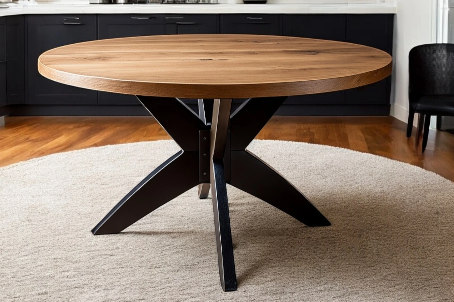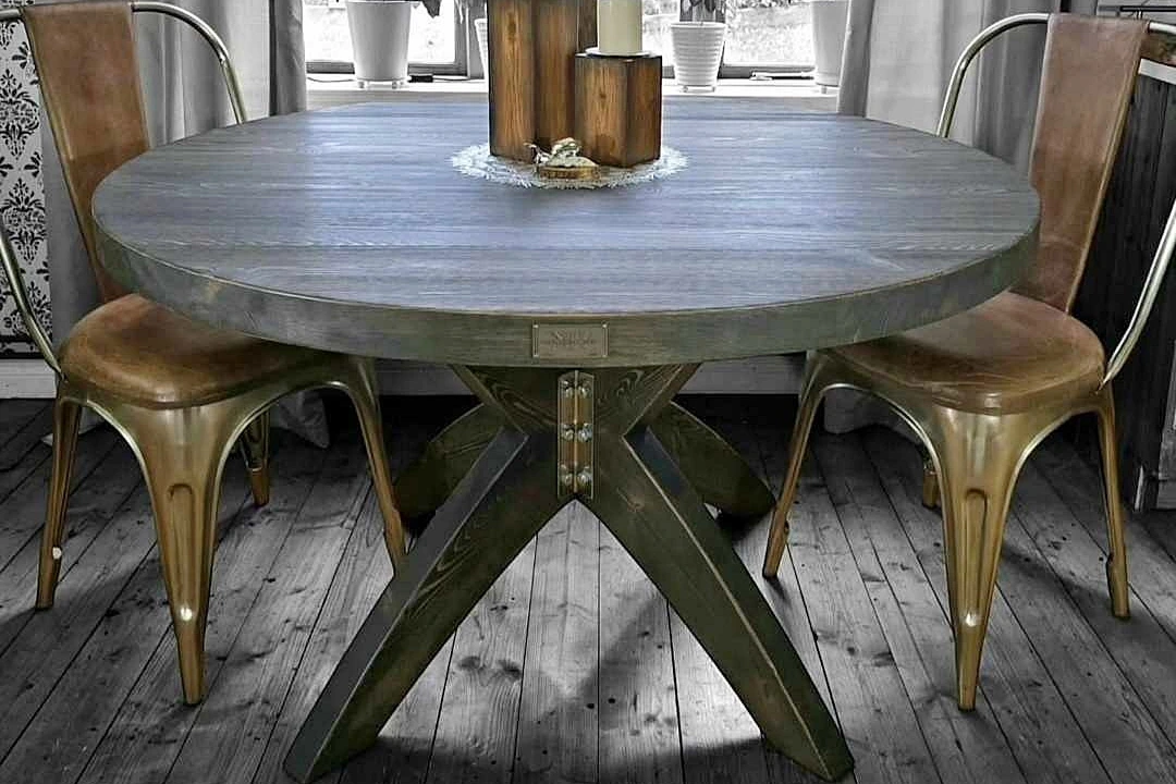 Matbord - Himmelfjäll × En läcker variant av ett runt kryssunderrede. Tidlöst men ändå modernt med de vackra ståldetaljerna i underredet. Pris från 17900 kr Offertförfrågan Fyll i formuläret med dina önskemål – så återkommer vi med en kostnadsfri offert anpassad efter dina behov. FuruEkValnötBjörkAlmGran